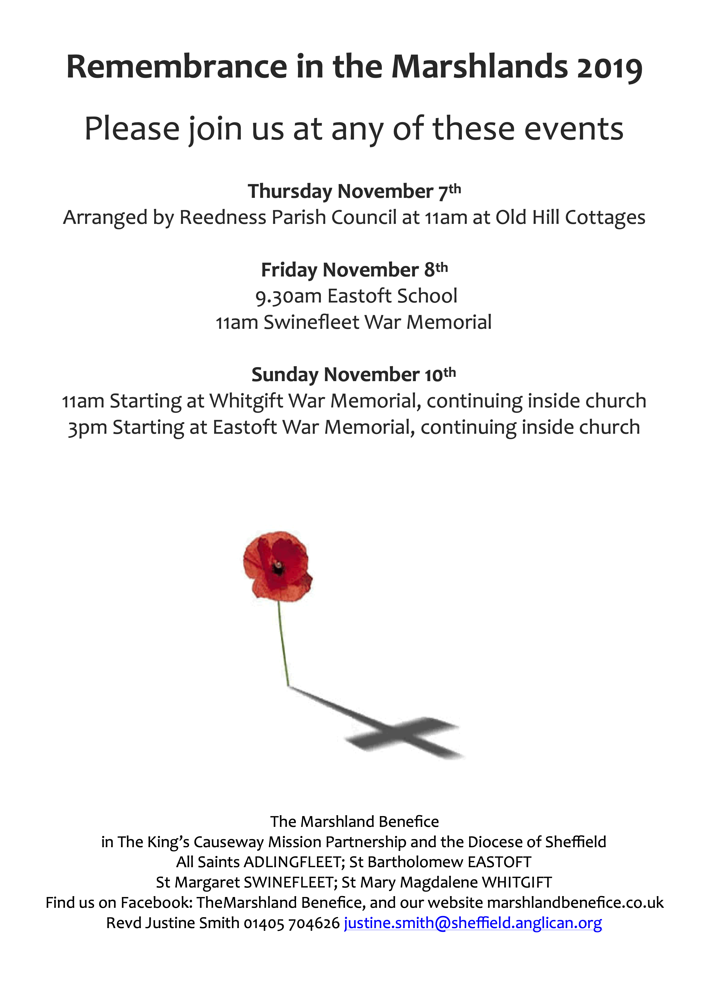 2019 Acts of Remembrance in the Marshlands 28th October 2019Full resolution (2479 × 3508) ← Previous Next →